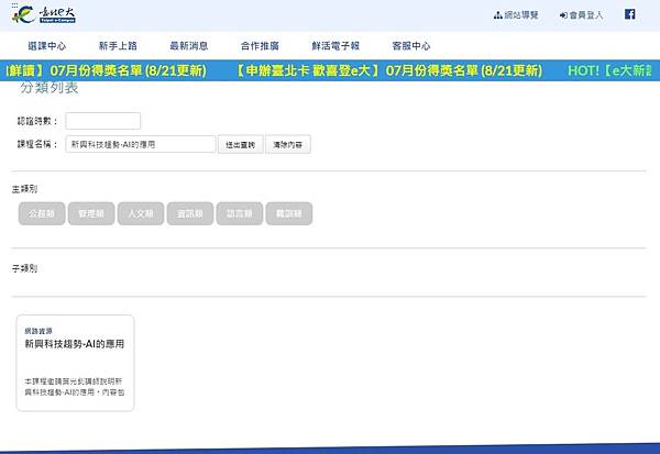 可以直接在課程名稱欄位輸入:新興科技趨勢-AI的應用