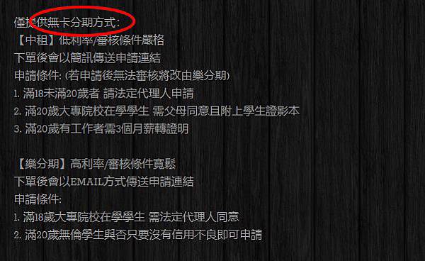 -中租(利率低 審核較嚴)、樂分期(利率高 審核較鬆)