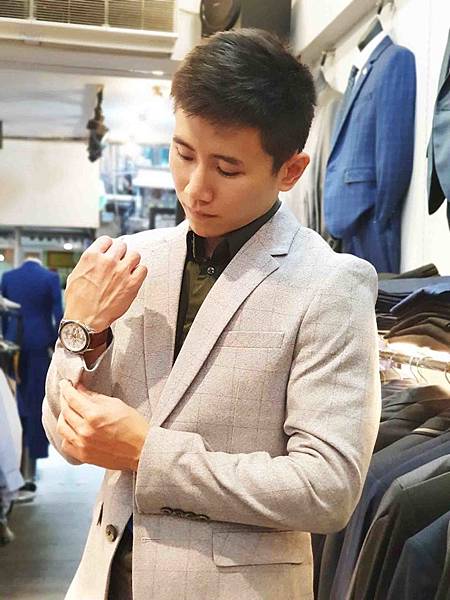 所以外面的西裝搭配就用較淺的顏色來搭配