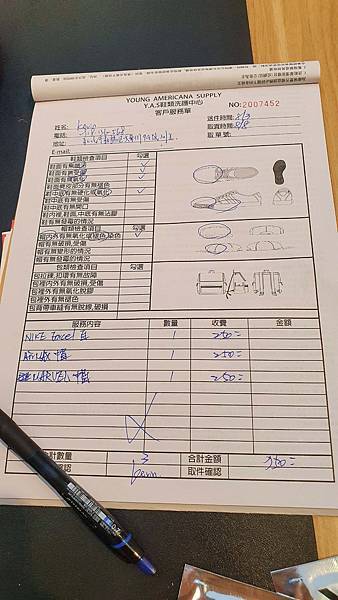 確認要做的服務後,會開一張洗鞋服務單