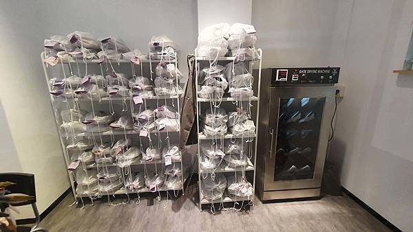 店裡可以透過櫥窗看到洗好保存的鞋子