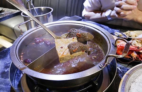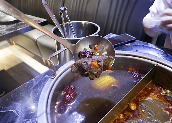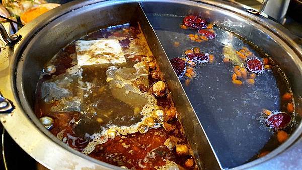 我們點的鴛鴦鍋湯底有招牌XO辣蝦湯與藥膳鍋