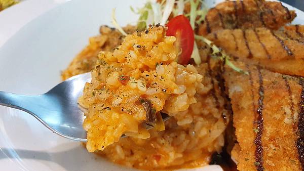 而燉飯部分 味道酸酸鹹鹹 有點泰式感