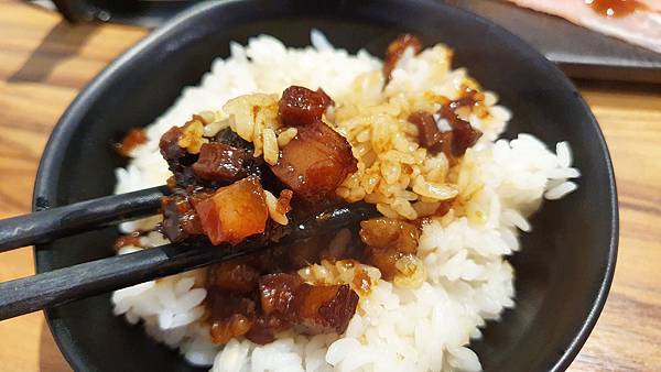 不得不說豬肉上的醬汁調味很棒 鹹度適中 帶點甘甜