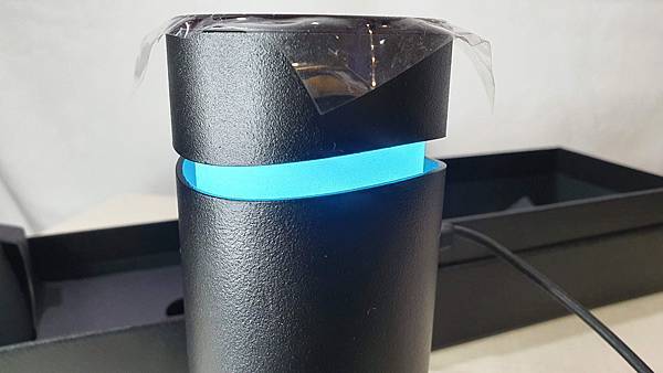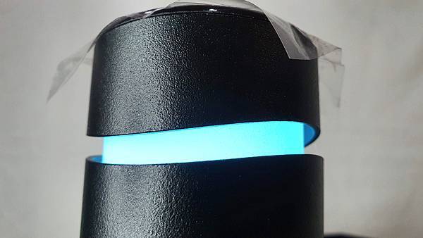 靠近頂部的白色簍空處也會亮起藍光