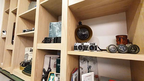 櫃檯也很漂亮 後面櫃子好多相機裝飾