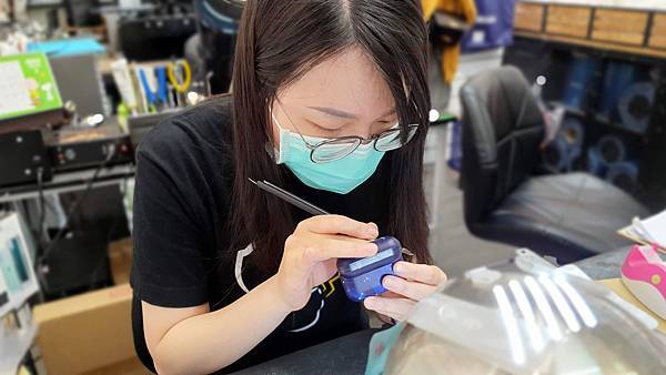 包膜師把耳機殼打開